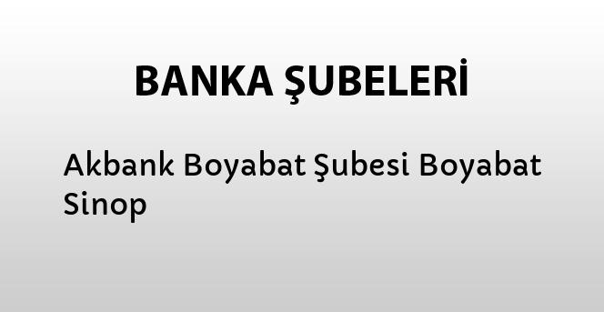 Akbank Boyabat Şubesine ait adres, telefon ve faks bilgilerini bu sayfada bulabilirsiniz.