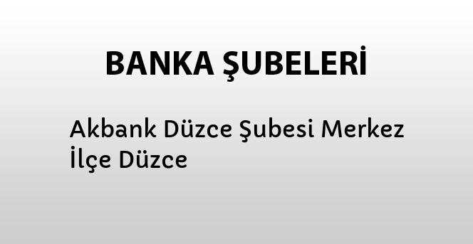 Akbank Düzce Şubesine ait adres, telefon ve faks bilgilerini bu sayfada bulabilirsiniz.