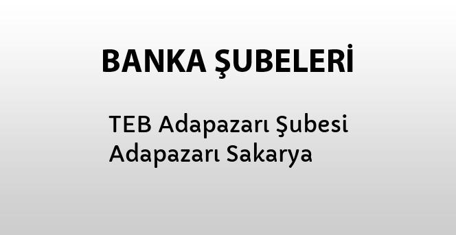 TEB Adapazarı Şubesine ait adres, telefon ve faks bilgilerini bu sayfada bulabilirsiniz.