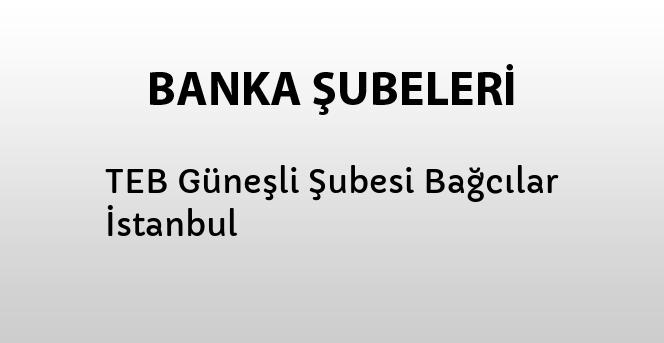 TEB Güneşli Şubesine ait adres, telefon ve faks bilgilerini bu sayfada bulabilirsiniz.