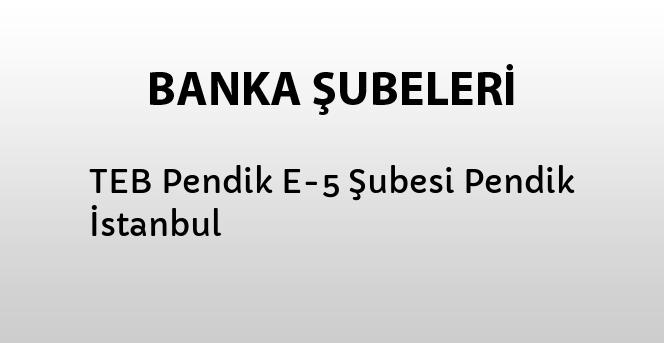 TEB Pendik E-5 Şubesine ait adres, telefon ve faks bilgilerini bu sayfada bulabilirsiniz.