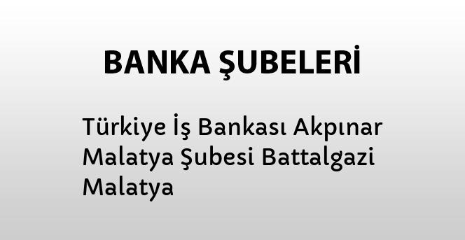 Türkiye İş Bankası Akpınar Malatya Şubesine ait adres, telefon ve faks bilgilerini bu sayfada bulabilirsiniz.