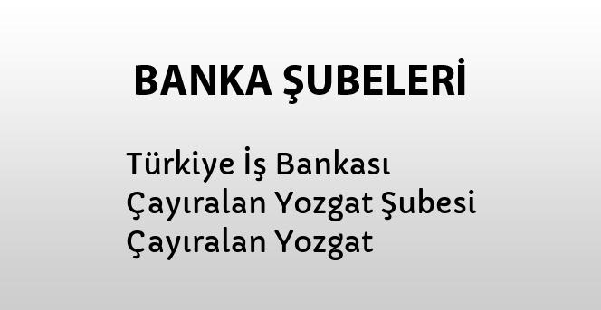Türkiye İş Bankası Çayıralan Yozgat Şubesine ait adres, telefon ve faks bilgilerini bu sayfada bulabilirsiniz.