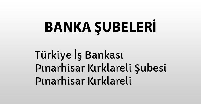 Şube adı: Türkiye İş Bankası Pınarhisar Kırklareli Şubesi