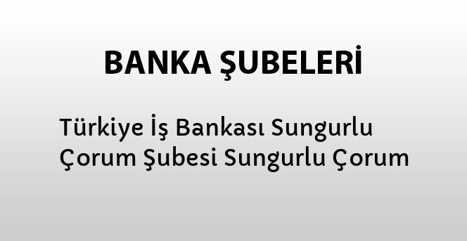 Türkiye İş Bankası Sungurlu Çorum Şubesine ait adres, telefon ve faks bilgilerini bu sayfada bulabilirsiniz.