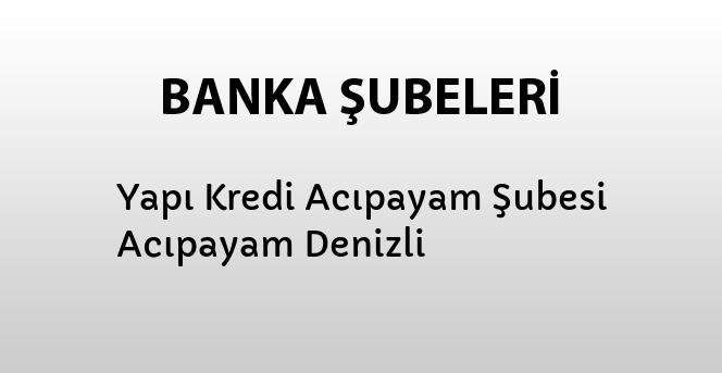 Yapı Kredi Acıpayam Şubesine ait adres, telefon ve faks bilgilerini bu sayfada bulabilirsiniz.
